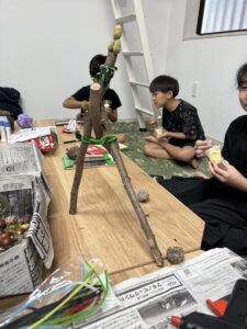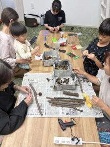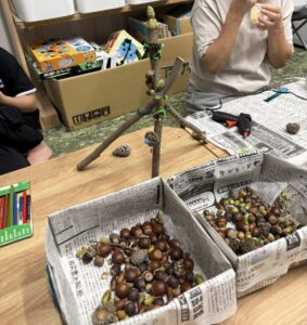 10月18日(土)に秋の工作活動として、どんぐりや小枝を使って作ってみたいものを作りました。